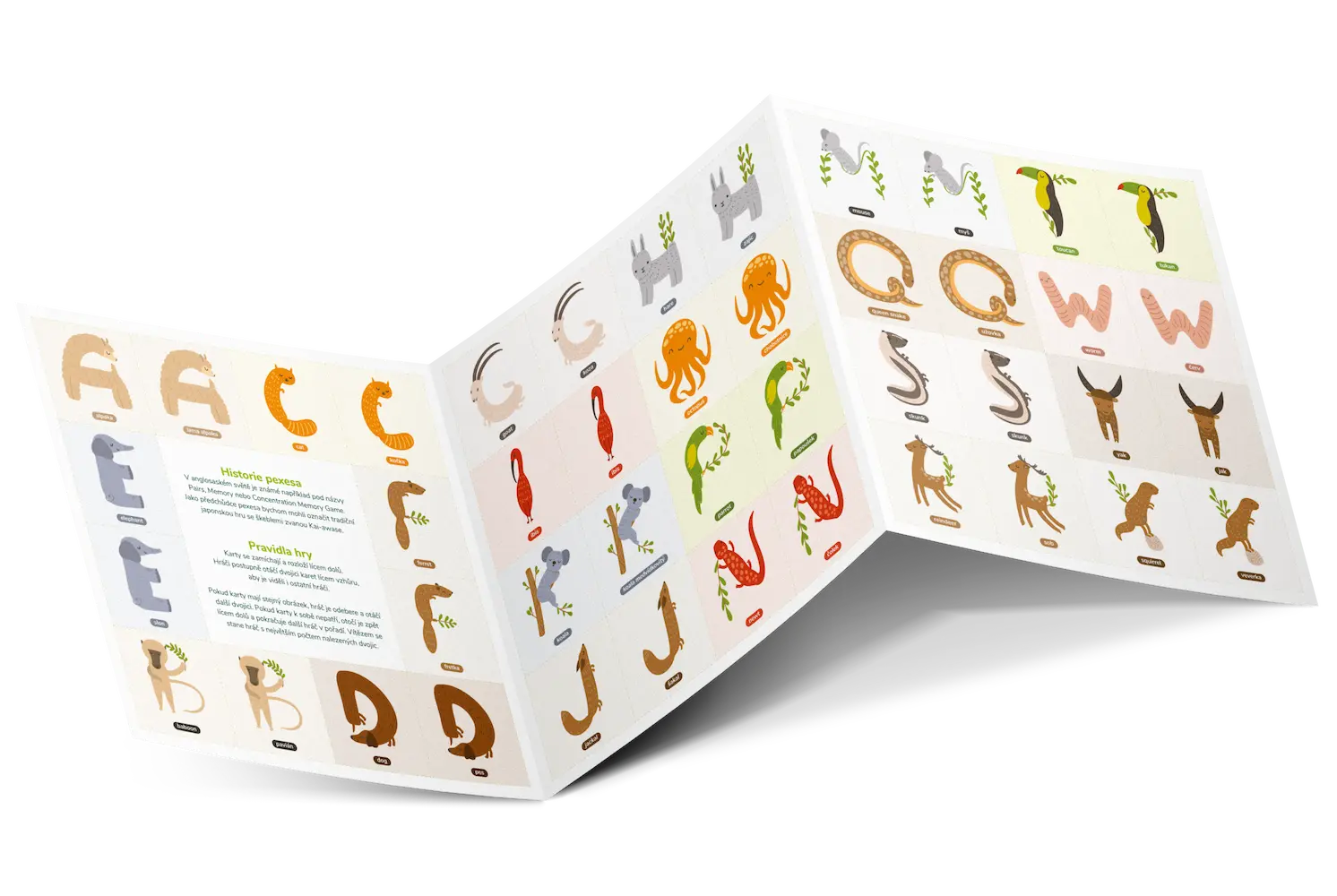 Nabízíme i lehce nestandardní pexeso, které je tvořeno třemi stránkami čtvercového tvaru o velikosti 210 × 210 mm. Prakticky se jedná o stejný produkt jako běžný trojlist A4, jen s...