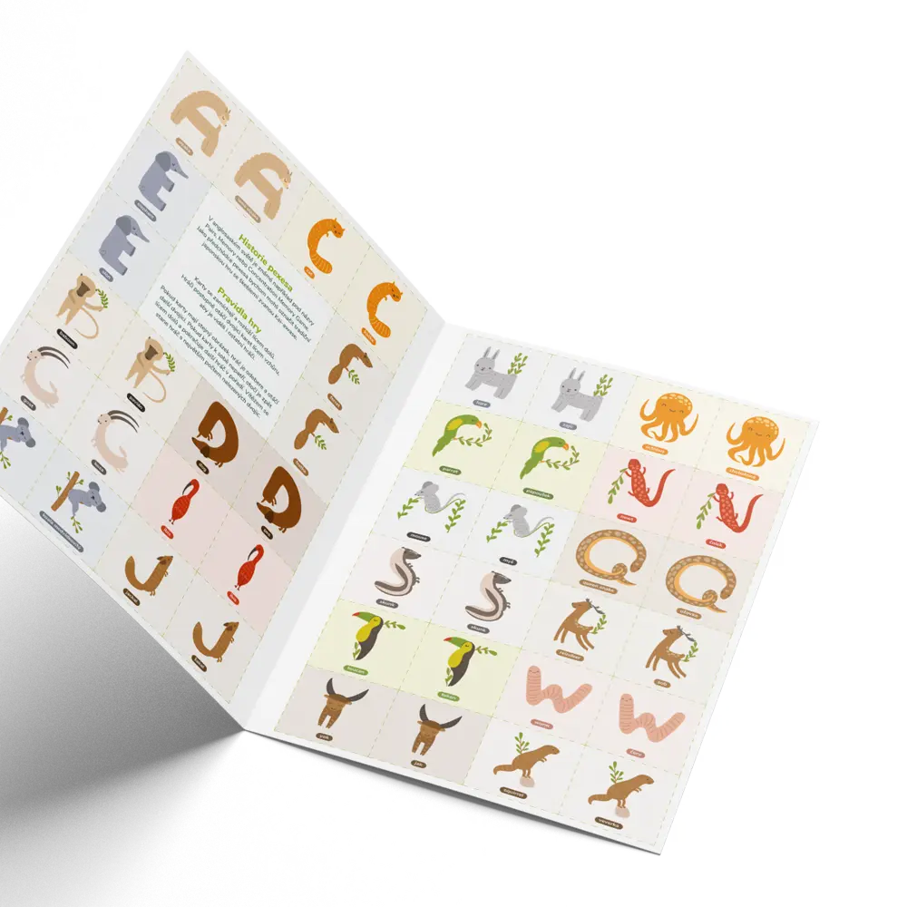 Jedná se o velmi často používané pexeso, které je tvořeno dvěma stránkami formátu A4. Jednotlivé karty pexesa je možné doplnit vlastním logem, vlastními fotografiemi nebo fotografi...